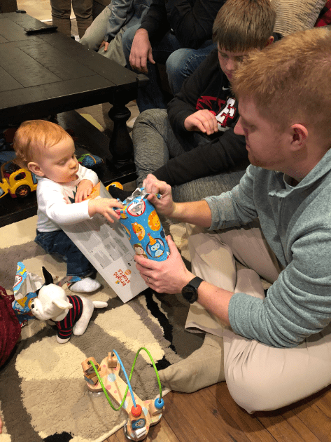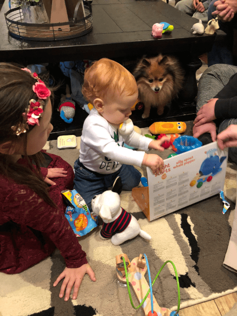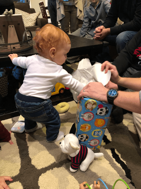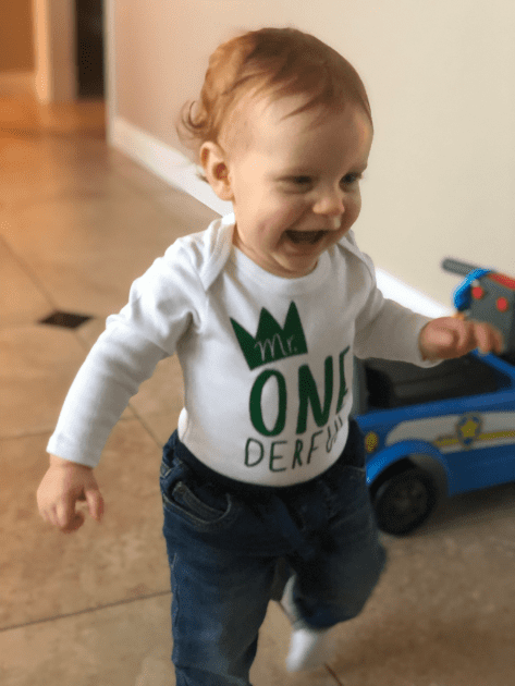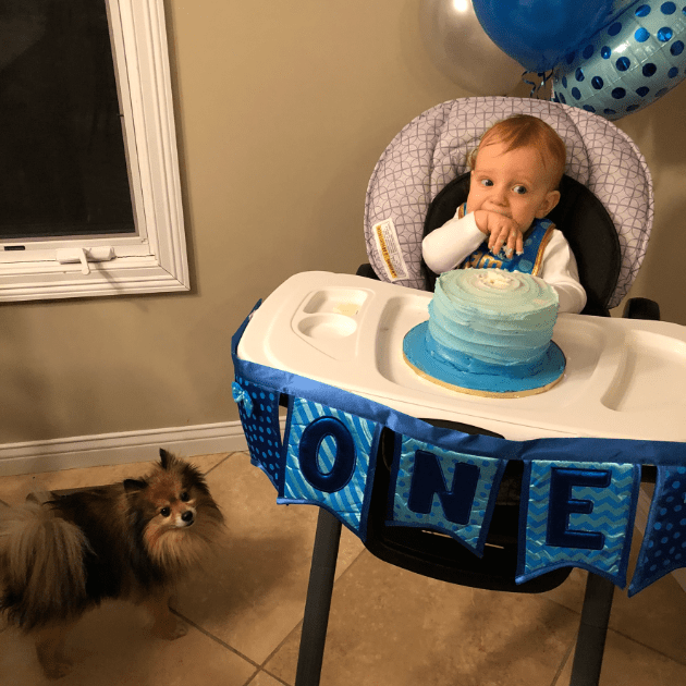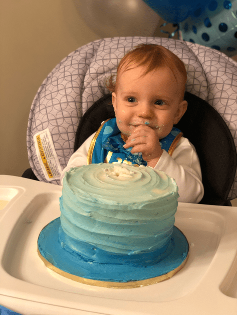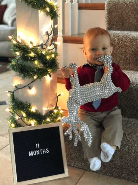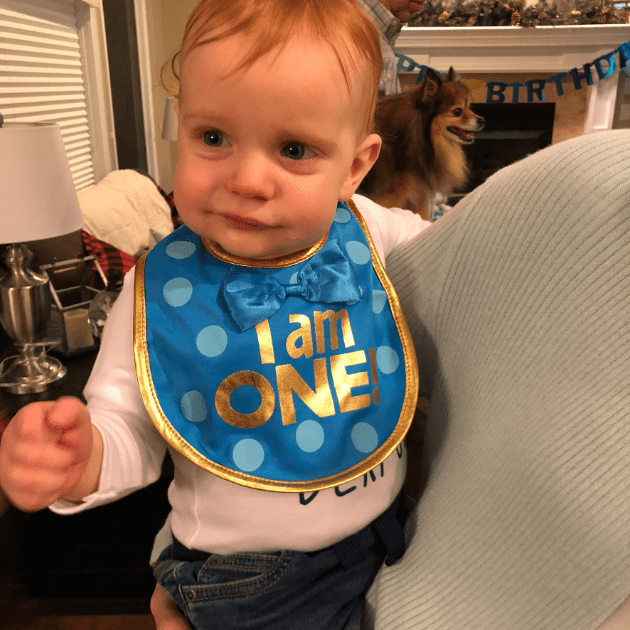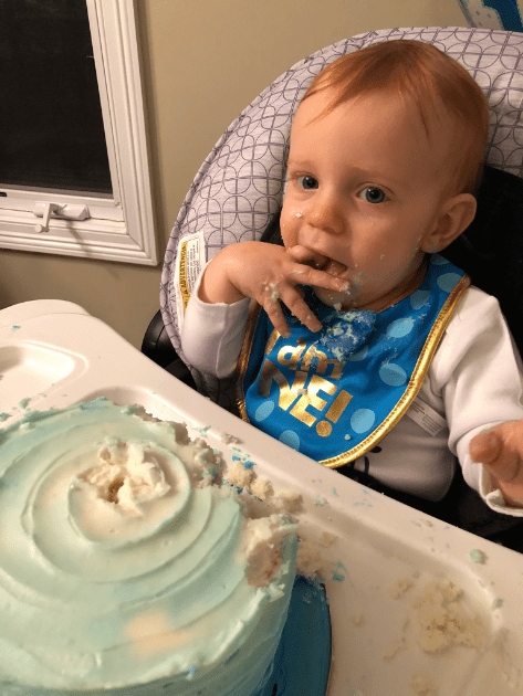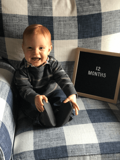 Before you say anything, I got flack for putting 12 months and not 1 year on the board. My reasoning behind it was….A. I honestly didn’t think about it and forgot and by the time I realized it I had already gotten the smile and I wasn’t about to tempt fate, and B. All the others one say month so I wanted to end it with months. Leyton turned a year on January 3rd, 2019. My parents got into town that day so we did just a little cake for him after dinner.