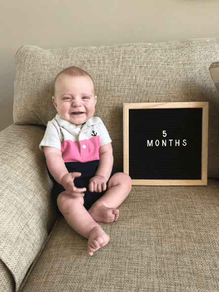 The first few months of parenthood were honestly a bit of a blur. I don’t remember much except for the round the clock routine and just feeling like all we (and by we I mean Leyton) did was eat and sleep. Eric reminds me often that the first night home from the hospital was so terrible (we didn’t know how to swaddle, he hated the pack-n-play, we didn’t know what we were doing, I bought the stupid Owlet sensor thing and it kept misreading and alarming. Just pretty much a disaster all around haha). We used to joke that when people said it flew by we didn’t really get it because to us, the first 3 months, felt like 3 months! But, once we got into a routine and figured one another out a bit (and bought a bassinet, ditched the Owlet and bought tons of velcro swaddles) we started to really fall into our routine. I would say ever since 3 months, the time has flown by.