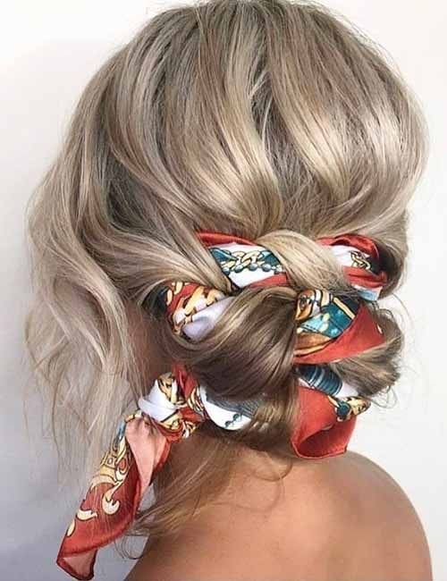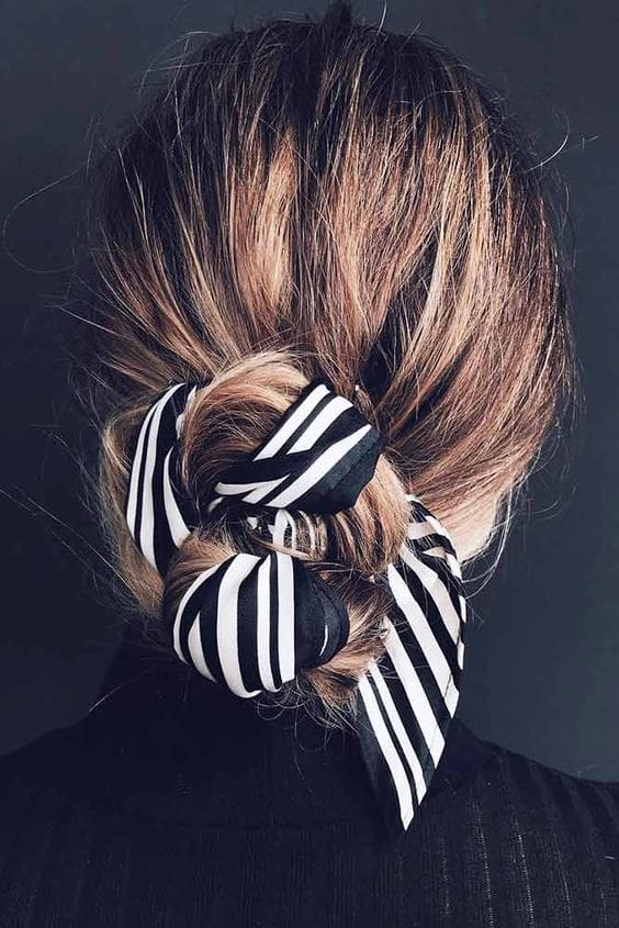 But, for days when you want all your hair up, then nothing beats the cheerleader feel of a high pony, or the ease of a messy bun.  The scarf is the perfect way to dress up both.
