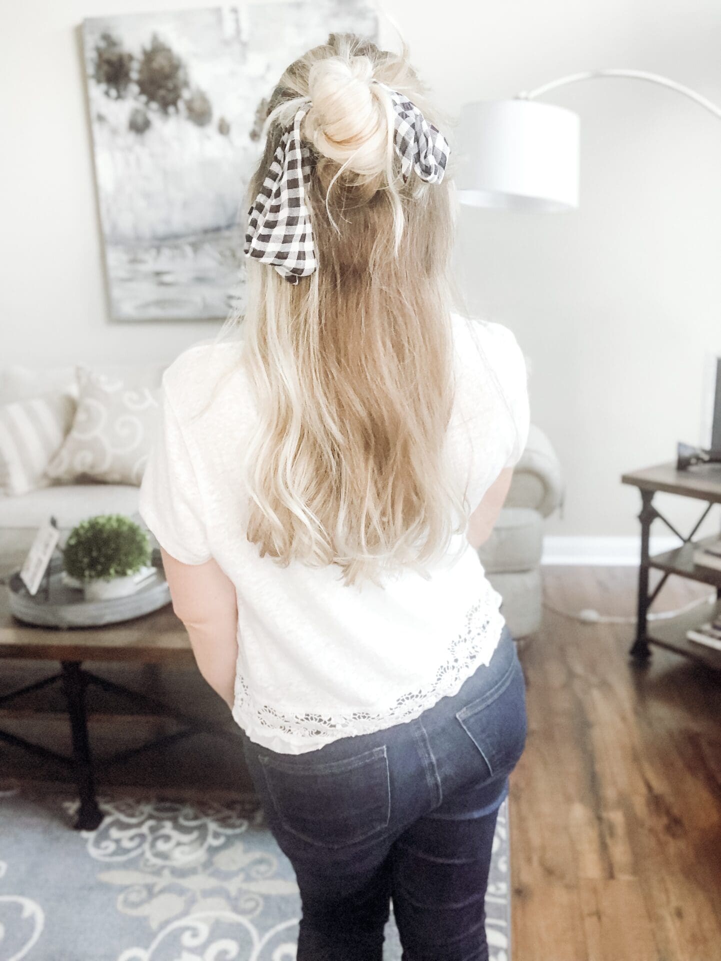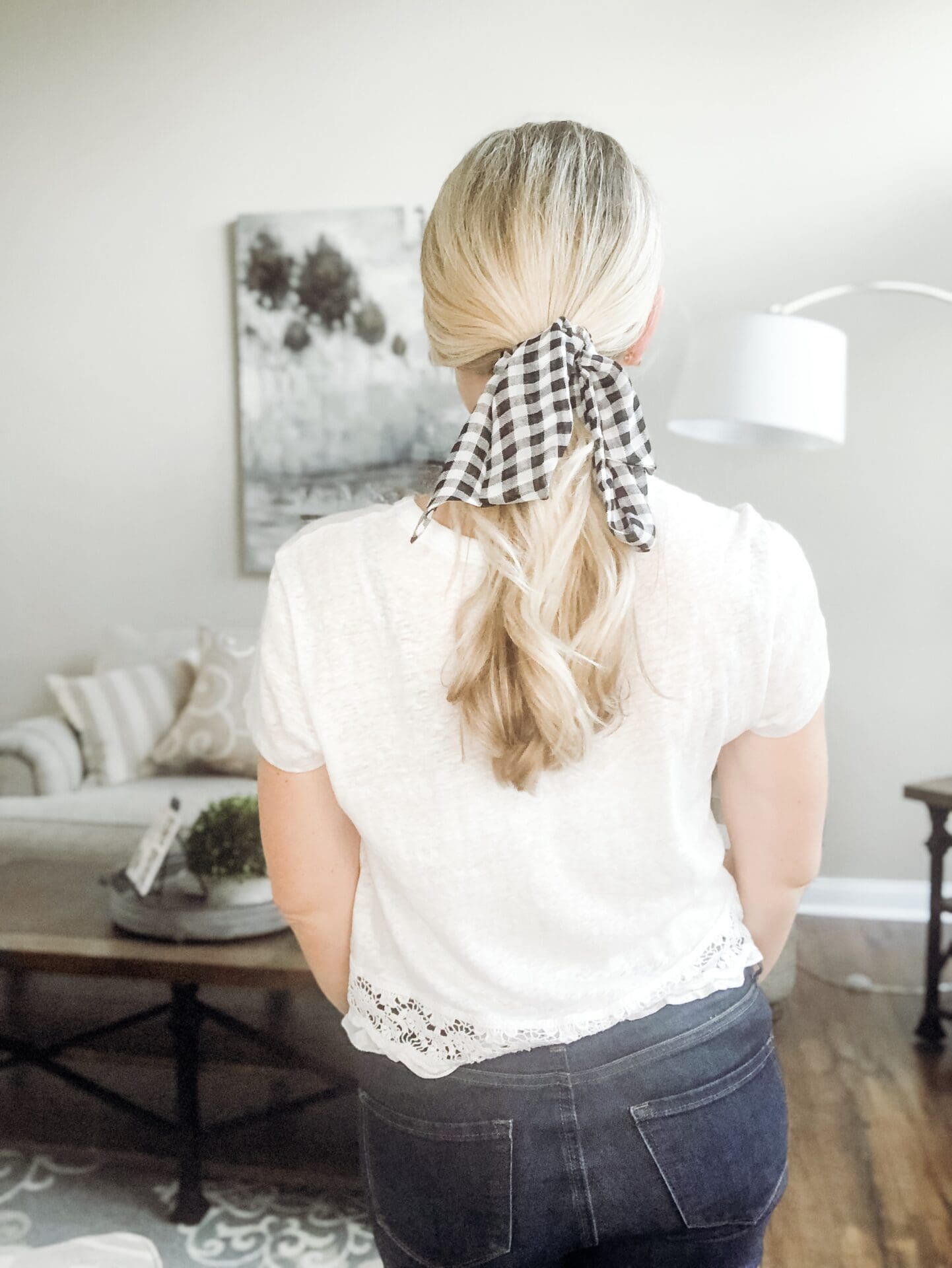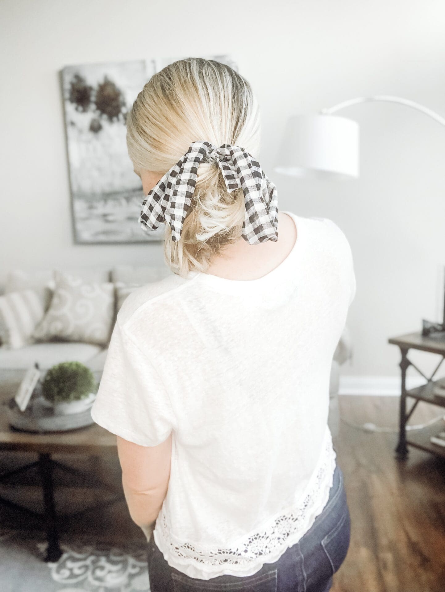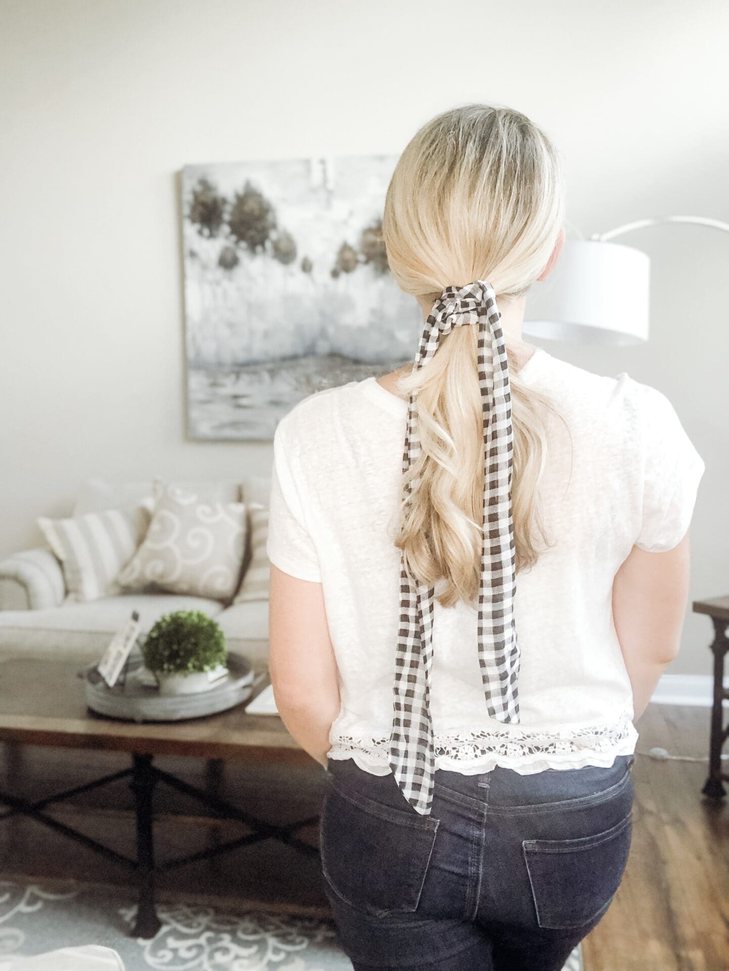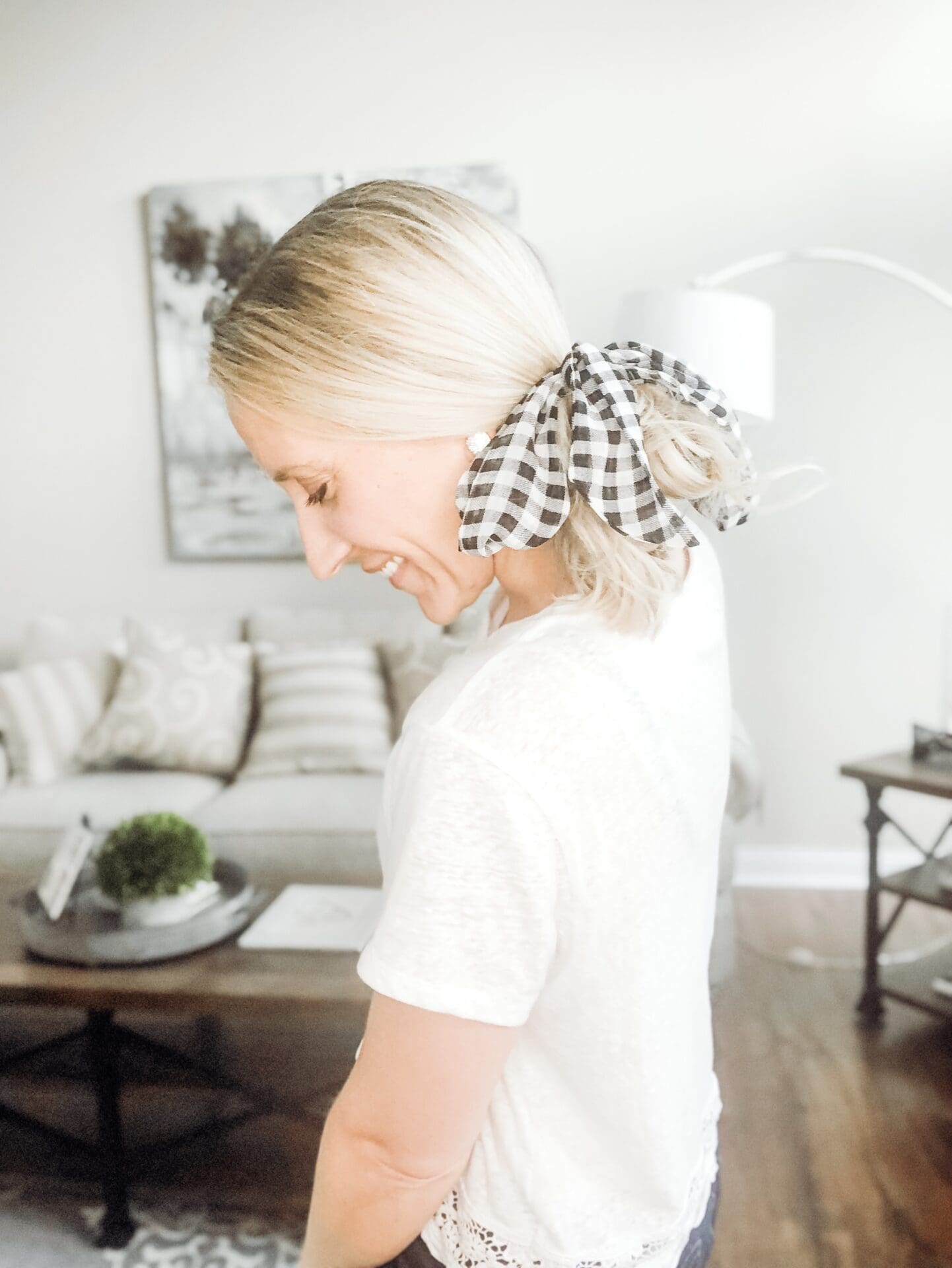 Today I’m kicking off this series by showing you several ways to wear a hair scrunchie/scarf combo. So let’s get to it! If you follow me on Instagram (@_jillkoch_) you can watch the video tutorial on IGTV.