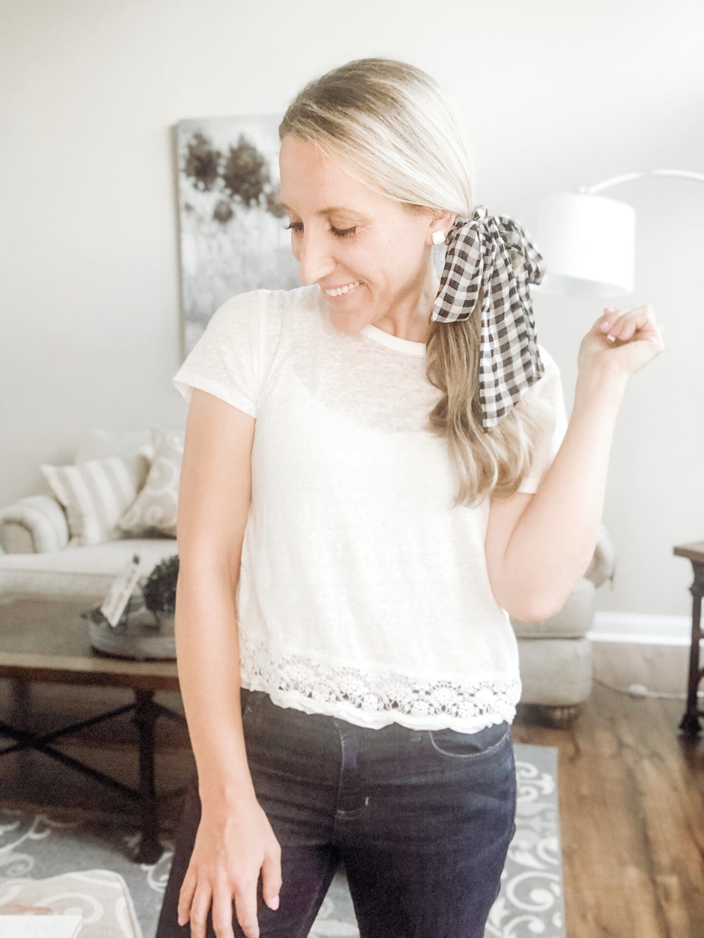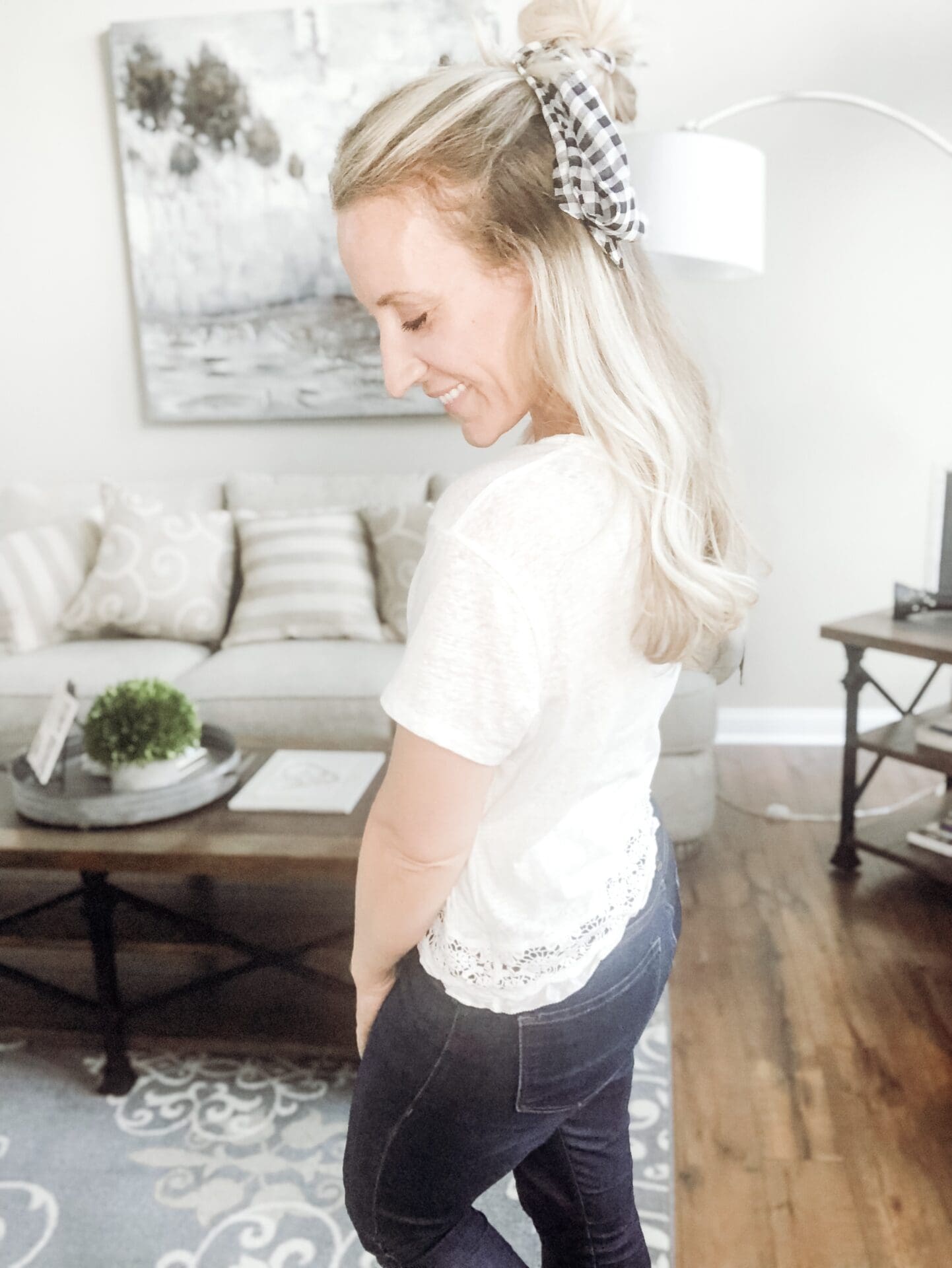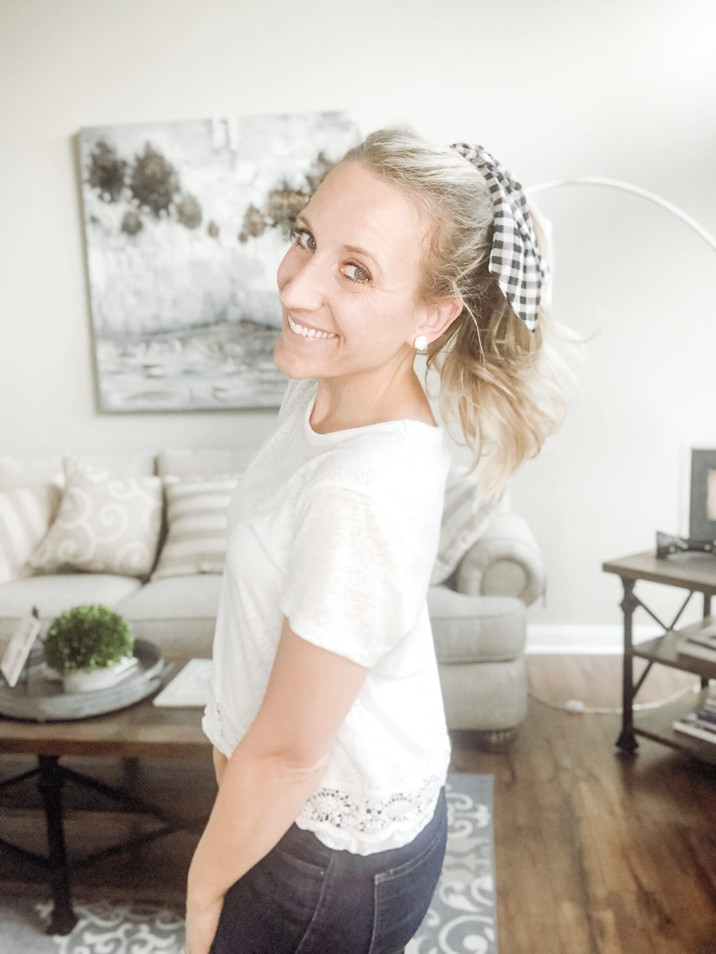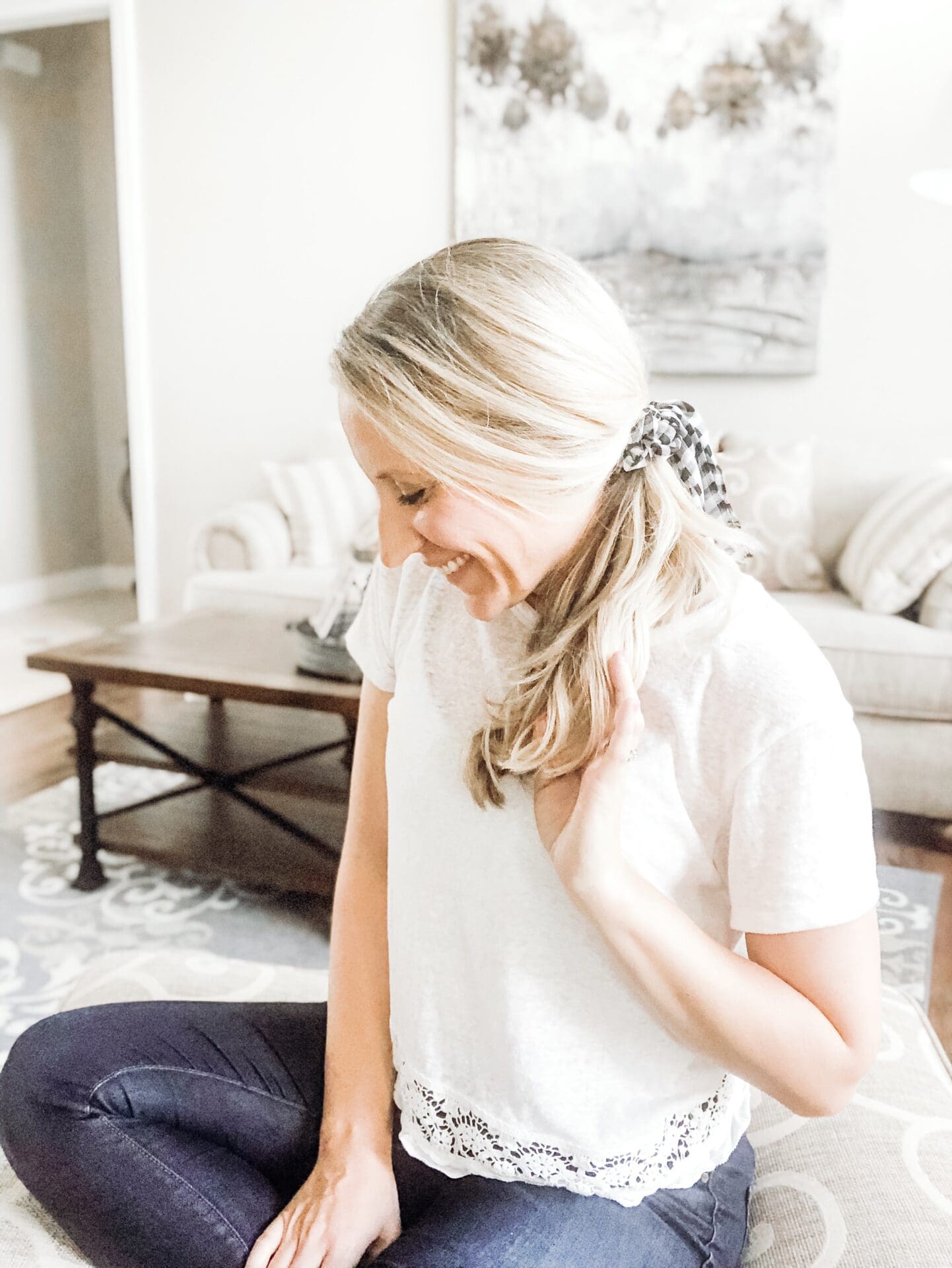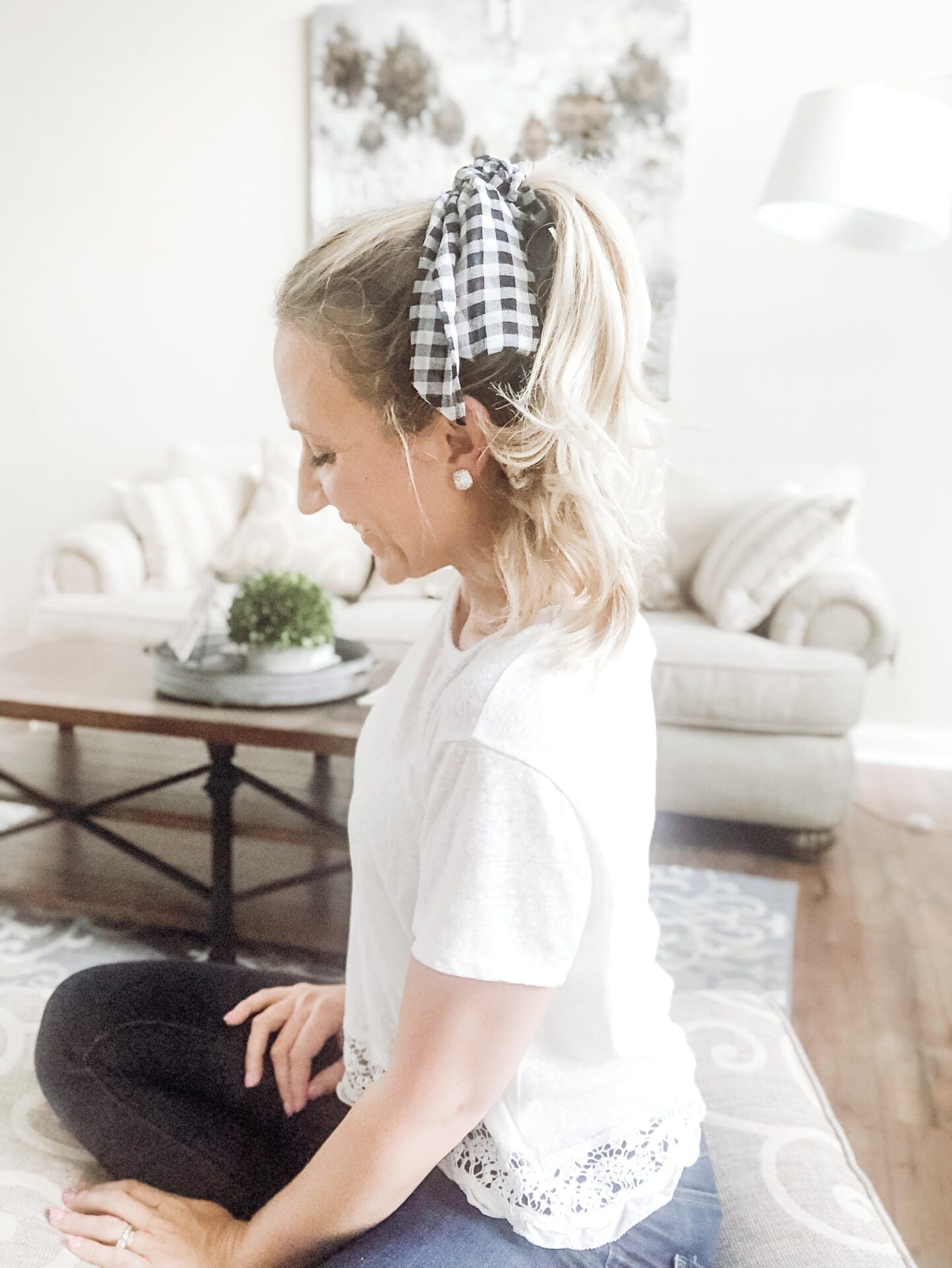 Today I’m kicking off this series by showing you several ways to wear a hair scrunchie/scarf combo. So let’s get to it! If you follow me on Instagram (@_jillkoch_) you can watch the video tutorial on IGTV.