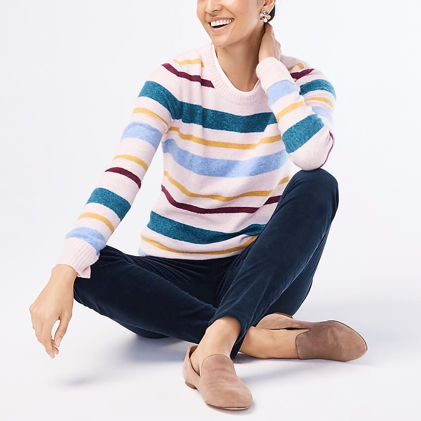 You all know I love my staple pieces. Give me all the simple (but cute) sweaters I can pair with jeans all day long, and this one fit the bill! I love gray and pink together and the pattern is just fun and feminine. Here are three other fun sweaters I found. All are currently 40% off.