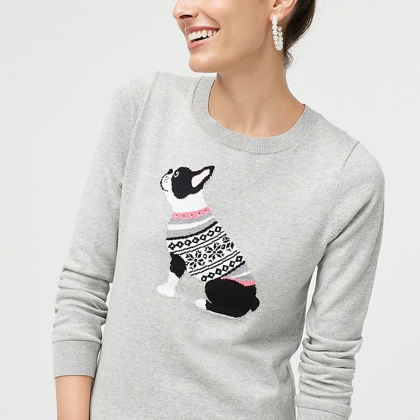Colorful Fair Isle Sweater // Boston Terrier Sweater // Striped Crewneck
