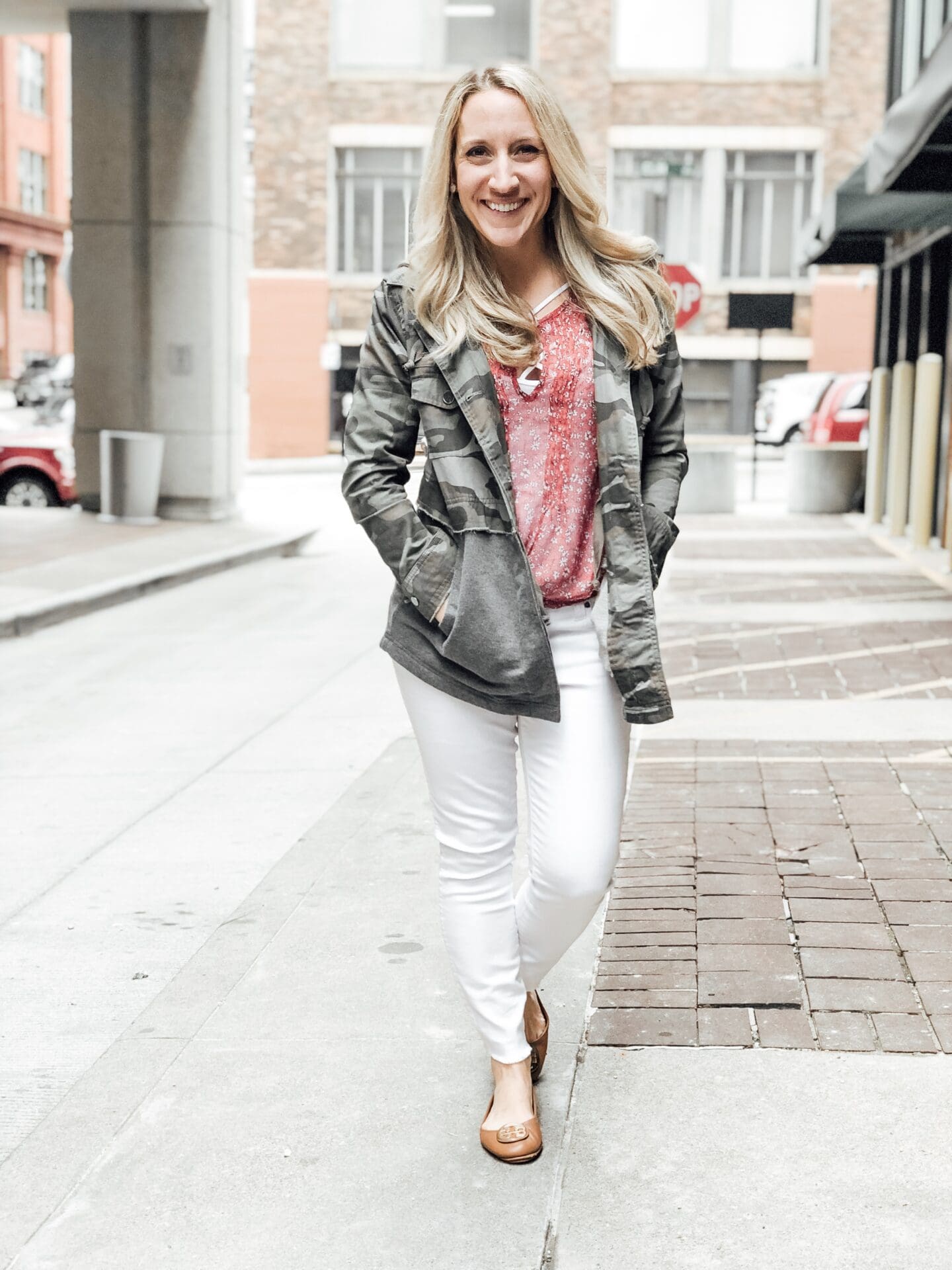 It’s my camo utility jacket from Evereve. I love it because it’s so lightweight and perfect for spring and goes with everything. Plus, I just really like the look of it and it will easily transition into fall as well.