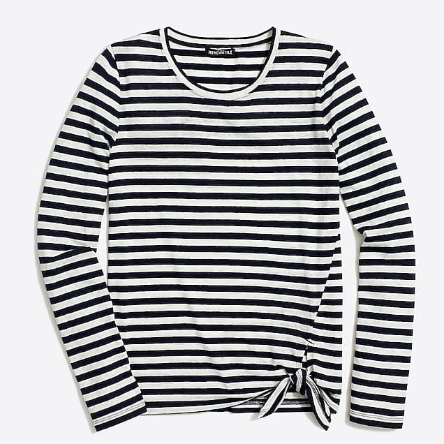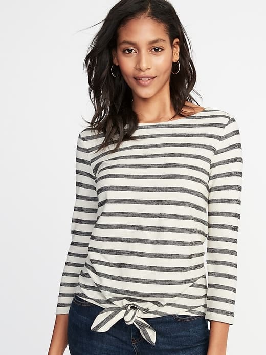 It’s slightly oversized and so comfortable. I love the colors and the tie detail in the back. It’s selling out fast but can be found here. Also comes in a black and white stripe.