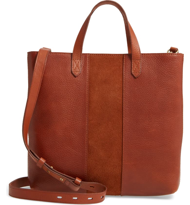 - Madewell Suede Stripe Transport Leather Tote – Comes in 3 colors. Reg. $198.00 ¦ Sale: $131.90