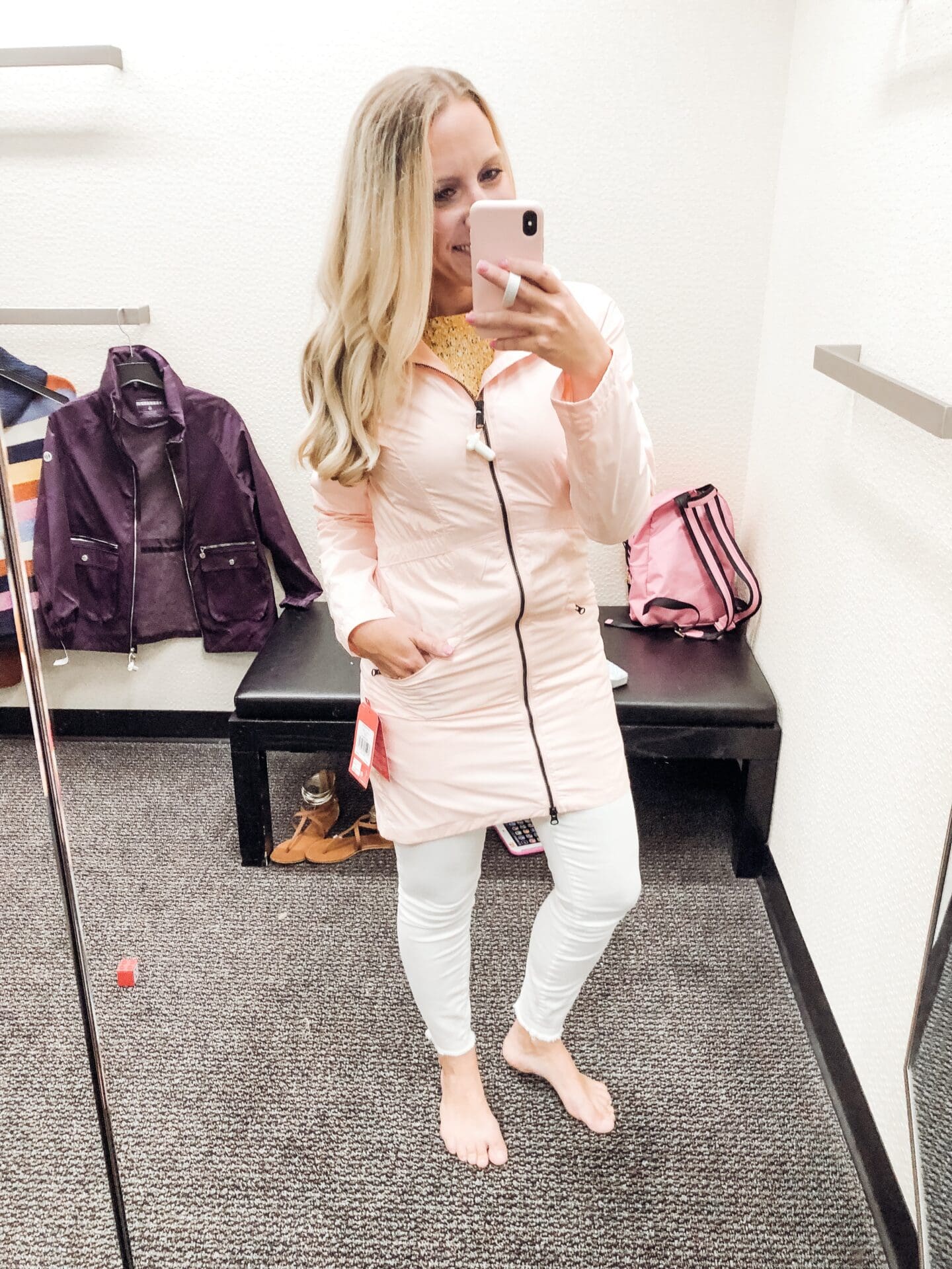 I love the color and style of this Bernardo water resistant raincoat. Definitely size down on this. I’m wearing an XS and it was still pretty big. You could actually probably size down 2 sizes.